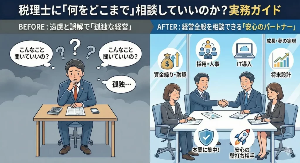 「こんな些細なことを聞いて失礼ではないか」「税金以外のことまで相談してもいいのだろうか」といった遠慮が原因で、専門家のサポートを受けるタイミングを逃してしまうケースも少なくありません。